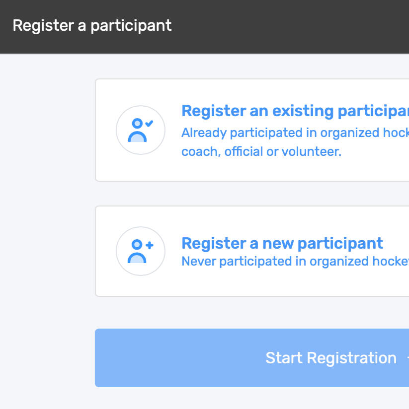 If you are registering a new participant (someone new to minor hockey) continue filling out all information and then register the same as an existing player (below).